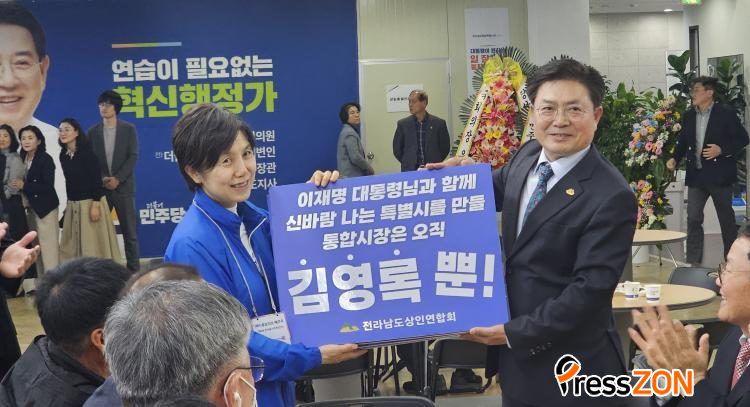 ÇѽÂÁÖ È¸Àå µî Àü³²»óÀο¬ÇÕȸ 300¸íÀº ¡°±è ¿¹ºñÈ帴 »óÀεé°ú Àû±ØÀûÀÎ ¼ÒÅë°ú °ø°¨À» ÅëÇØ Àü±¹ ÃÖÃÊ·Î Àü³² ÀåÅÍ À¯¶û´Ü, ½º¸¶Æ® ÀüÅë½ÃÀåÀ» ±¸ÃàÇß´Ù¡±¸ç ¡°¿ì¸®µéÀÇ ²ÞÀ» Çö½Ç·Î ¸¸µé¾î ÁÙ À¯ÀÏÇÑ Èĺ¸¡± ¶ó°í Æò°¡Çß´Ù.