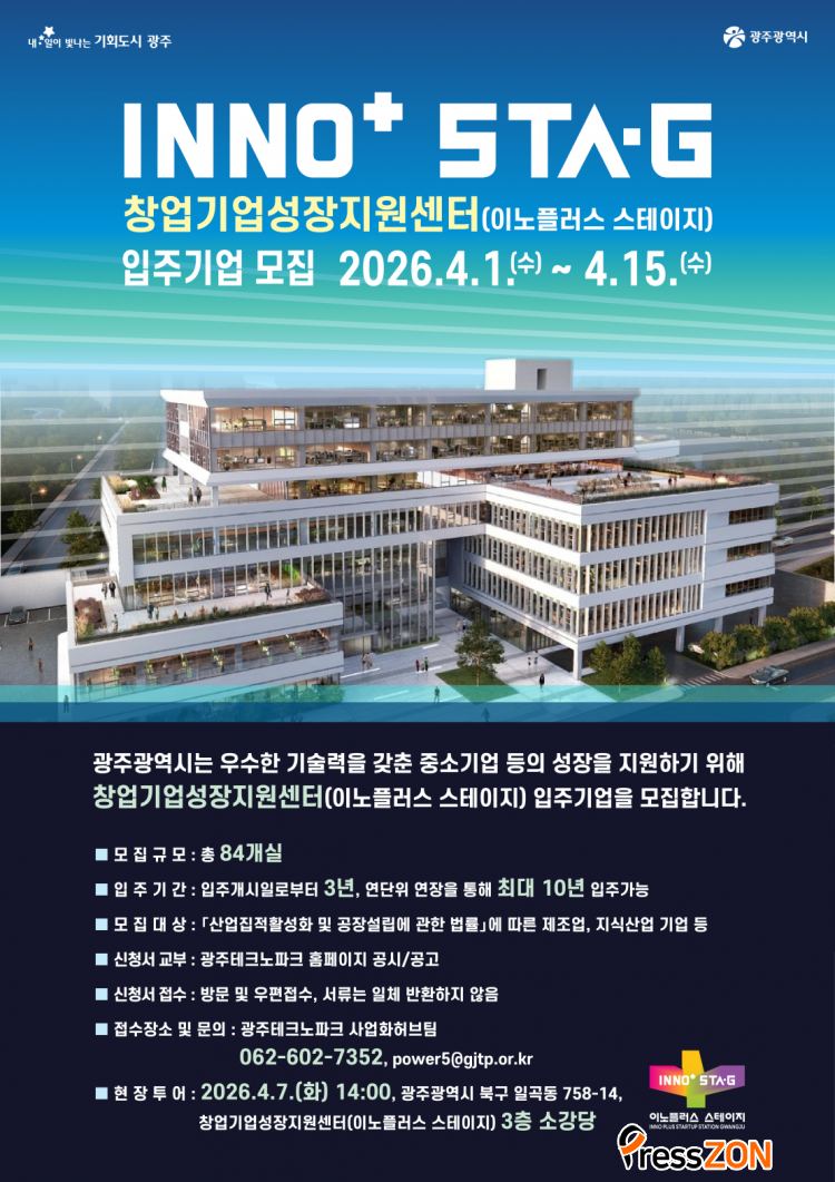 [ÇÁ·¹½ºÁ¸] ±¤ÁÖ±¤¿ª½Ã´Â Á¦Á¶±â¹Ý À¯¸Á ±â¼úâ¾÷ ±â¾÷ÀÇ ¼ºÀåÀ» °ßÀÎÇÒ ½Å±Ô â¾÷±â¾÷ ¼ºÀåÁö¿ø¼¾ÅÍ ¡®À̳ëÇ÷¯½º ½ºÅ×ÀÌÁö(INNO+ STA¡¤G)¡¯ÀÇ °³°üÀ» ¾ÕµÎ°í 4¿ù 1ÀϺÎÅÍ 15ÀϱîÁö ÀÔÁÖ±â¾÷À» ¸ðÁýÇÑ´Ù.