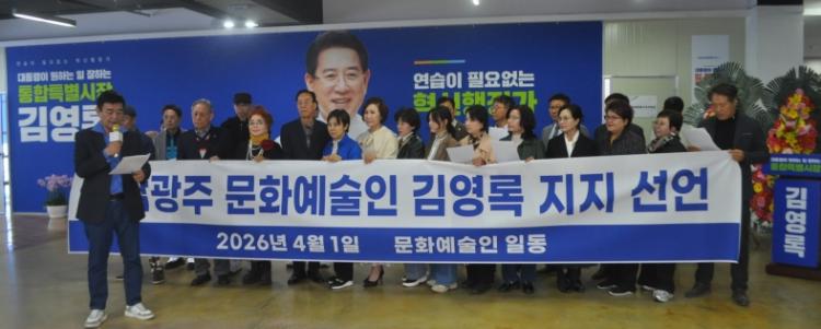 »ç )±¤ÁÖ¿µÈÀÎÇùȸ Â÷µÎ¿Á ȸÀåÀ» ºñ·ÔÇÑ Áö¿ª ¹®È¿¹¼úÀÎ 30¿© ¸íÀº 2 ÀÏ ±¤Áֽà ±¤Ãµµ¿ ¼±°Å»ç¹«½ÇÀ» ã¾Æ, Àü³²±¤ÁÖ ¹®È¿¹¼úÀÇ »ýŰ踦 Çõ½ÅÇÒ »ç¶÷À¸·Î ±è ¿¹ºñÈ常¦ ²Å°í ÀüÆøÀûÀÎ ÁöÁö¸¦ ¼±¾ðÇß´Ù.