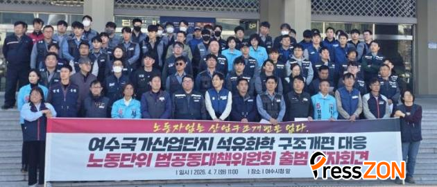 ¹ÎÁÖ³ëÃÑ Àü³²Áö¿ªº»ºÎ¡¤¿©¼ö½ÃÁöºÎ, Çѱ¹³ëÃÑ Àü¶ó³²µµÁö¿ªº»ºÎ¡¤¿©¼öÁö¿ªÁöºÎ, ¿©¼ö»ê´Ü³ëµ¿Á¶ÇÕÇùÀÇȸ, Çѱ¹³ëÃÑ Àü±¹ÈÇг뵿Á¶ÇÕ¿¬¸Í Àü³²Áö¿ªº»ºÎ µî 6°³ ´Üü´Â 7ÀÏ '¿©¼ö±¹°¡»ê¾÷´ÜÁö ¼®À¯ÈÇÐ ±¸Á¶°³Æí ´ëÀÀ ³ëµ¿´ÜÀ§ ¹ü°øµ¿´ëÃ¥À§¿øÈ¸(³ëµ¿¹ü´ëÀ§)' Ãâ¹ü ±âÀÚȸ°ßÀ» ¿°í °ø½Ä Ȱµ¿À» ¼±¾ðÇß´Ù.