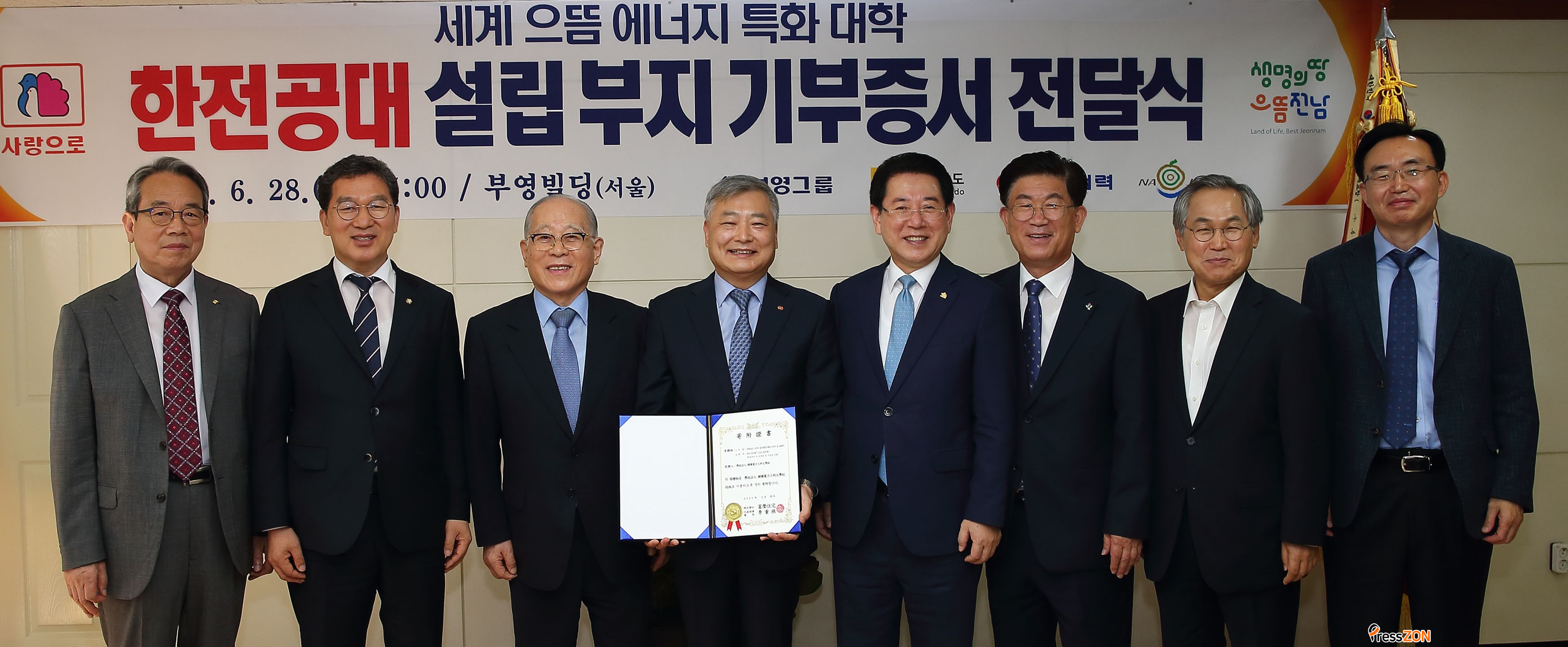 À̳¯ ±âºÎÁõ¼ Àü´Þ½Ä¿¡´Â ÀÌÁß±Ù ºÎ¿µ±×·ì ȸÀåÀ» ´ë½ÅÇØ À̼¼Áß È¸Àå Á÷¹«´ëÇà, ÃÖ¾çȯ․±è½Ãº´․À̱âÈ« ´ëÇ¥ÀÌ»ç, ±è¿µ·Ï Àü¶ó³²µµÁö»ç, ½ÅÁ¤ÈÆ ±¹È¸ÀÇ¿ø, ¿ìÀ±±Ù ÇÑÀü°ø´ë ¹ü½Ãµµ¹Î Áö¿øÀ§¿øÈ¸ °í¹®, À±º´Å Á¤¹«ºÎÁö»ç, ±èȸõ Çѱ¹Àü·Â ºÎ»çÀå, °ÀÎ±Ô ³ªÁÖ½ÃÀå, ÇÑÀü°ø´ë ¼³¸³ °ü°èÀÚ µî 30¿©¸íÀÌ Âü¼®Çß´Ù.