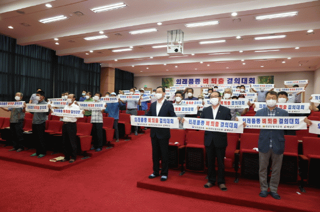 ¿Ü·¡Ç°Á¾ ÅðÃâ °áÀǹ®¿¡¼´Â ¿Ü·¡Ç°Á¾ º´Â ½ÉÁöµµ ÆÈÁöµµ ¾Ê°Ú´Ù´Â ³ó¾÷ÀÎ ´ÙÁü°ú ÇÔ²² ³óÃÌÁøÈïû ¹× Àü³²³ó¾÷±â¼ú¿øÀº ÃÖ°íǰÁú ½Ò ǰÁ¾ À°Á¾°³¹ß°ú Àç¹è±â¼ú È®´ë º¸±Þ¿¡ ³ë·ÂÇØ ³ª°¥ °ÍÀ» ¹àÇû´Ù.