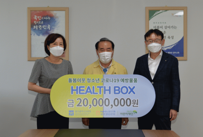 NH³óÇùÀºÇà ±¤ÁÖ¿µ¾÷º»ºÎÀÇ À̹ø ¡®°Ç°²Ù·¯¹Ì(Health Box)¡¯ Áö¿øÀº ¡®The ÇູÇÑ µ¿Ç࡯ »ç¾÷ÀÇ ÀÏȯÀ¸·Î ÀÌ·ïÁ³´Ù. ½Ã±³À°Ã»Àº ü¿Â°è¡¤¸¶½ºÅ©¡¤ºñŸ¹Î µîÀ¸·Î ±¸¼ºµÈ ¡®°Ç°²Ù·¯¹Ì(Health Box)¡¯¸¦ °ü³» ÁßÇб³ Àú¼Òµæ¡¤Ãë¾à°èÃþ Çлý 200¸í¿¡°Ô Áö¿øÇÒ ¿¹Á¤ÀÌ´Ù.