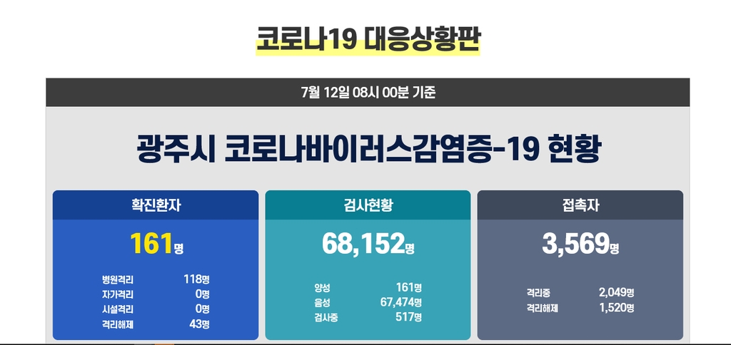 ÀÌ·Î½á ±¤ÁÖ Áö¿ª ´©Àû È®ÁøÀÚ´Â 161¸í, 2Â÷ À¯ÇàÀÌ ½ÃÀÛµÈ Áö³´Þ 27ÀÏ ÀÌÈÄ 128¸í¿¡ À̸¥´Ù.
