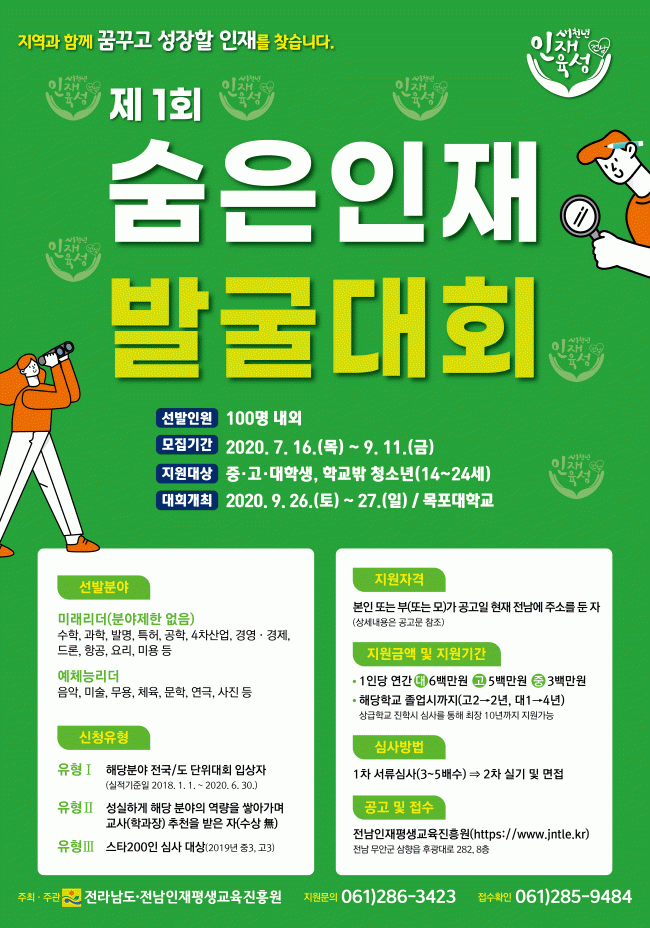 ¡®¼ûÀº ÀÎÀç ¹ß±¼´ëȸ¡¯´Â Áö¿ªÀÇ ¹Ì·¡¸¦ À̲ø ÀÎÀ縦 ¹ß±¼À°¼ºÇϱâ À§ÇØ ¿À´Â 9¿ù 26ÀϺÎÅÍ 2Àϰ£ ÆîÃÄÁö¸ç, ¹Ì·¡¸®´õ¿Í ¿¹Ã¼´É¸®´õ µî 2°³ ºÎ¹®À¸·Î ³ª´² »çÀü ¼±Á¤ÀÚ ¸ðÁý¿¡ µé¾î°£´Ù.