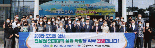 À̱ͳ² Àü³² »õ¸¶À»È¸Àå°ú ±èÀºÁÖ ÀÌÅëÀ忬ÇÕȸ Àü³²ÁöºÎÀåÀº ¡°Àü³²µµ¹ÎÀ¸·Î¼ Àǰú´ëÇÐÀÌ Àü³²¿¡ µé¾î¼³ ¼ö ÀÖ°Ô µÅ °¨°Ý½º·´´Ù¡±¸ç ¡°¾ÕÀ¸·Î ¼³¸³µÉ Àǰú ´ëÇÐÀÌ Àü³² ÀÇ·áÀÇ Áß½ÉÀ¸·Î ÀÚ¸®¸Å±è ÇÒ ¼ö ÀÖµµ·Ï ȸ¿ø ¸ðµÎ°¡ ÇÔ²² ÀÀ¿øÇϰڴ١±°í ¸»Çß´Ù.