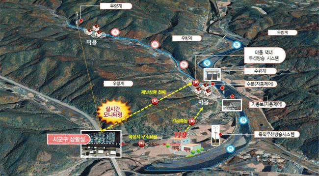 °¢ Àåºñµé¿¡ ±âÁØ ÀÌ»óÀÇ Â¡Èİ¡ °¨ÁöµÇ¸é »ç¹°ÀÎÅͳÝ(IoT)°ú ¿¬°áµÈ Á¶±â °æº¸½Ã½ºÅÛÀÌ °¡µ¿µÇ°í °æº¸¾Ë¶÷(ÈÞ´ëÆù ¾Ë¸², ¸¶À» ¹æ¼Û, Àü±¤ÆÇ Ç¥Ãâ)À» ÅëÇØ ÁֹεéÀÌ À§ÇèÁö¿ªÀ» ½Å¼ÓÈ÷ ¹þ¾î³¯ ¼ö ÀÖµµ·Ï ¾È³»ÇØÁØ´Ù.