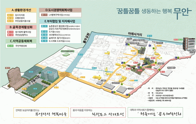 ¹«¾È±ºÀº 2019³â ÇϹݱ⿡ ±¹Åä±³ÅëºÎ°¡ °ø¸ðÇÑ µµ½ÃÀç»ý ´ºµô»ç¾÷¿¡ ¼±Á¤µÇ¾î ¹«¾ÈÀ¾ ¼º³²¸® ÀÏ¿ø Áß¾Ó·Î¿Í ³«ÁöƯȰŸ®, ±¸ 5ÀϽÃÀå ºÎÁö¿¡ À̸£´Â 135,501§³(40,990Æò)¸¦ »ç¾÷ ±¸¿ªÀ¸·Î Á¤ÇÏ°í ¼èÅðÇÏ´Â ¿øµµ½É¿¡ Ȱ·ÂÀ» ºÒ¾î³Ö±â À§ÇÑ 6°³ÀÇ ¼¼ºÎ»ç¾÷À» ¼ö¸³ÇÏ¿´´Ù.