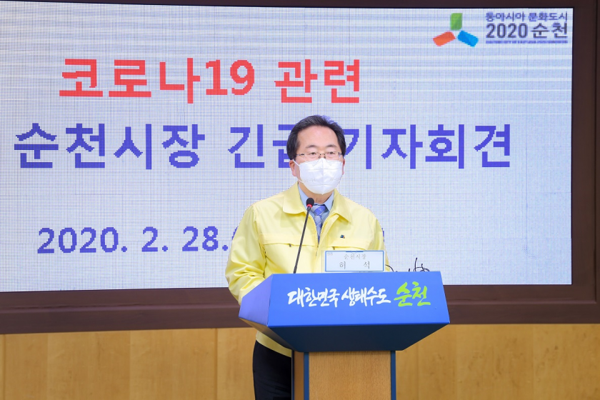 28ÀÏ ¿ÀÈÄ ¼øÃµ¿¡¼ Äڷγª19 ȯÀÚ°¡ ¹ß»ýÇÔ¿¡ µû¶ó ±âÀÚȸ°ßÀ» °®°í ÀÖ´Â Çã¼® ¼øÃµ½ÃÀå.