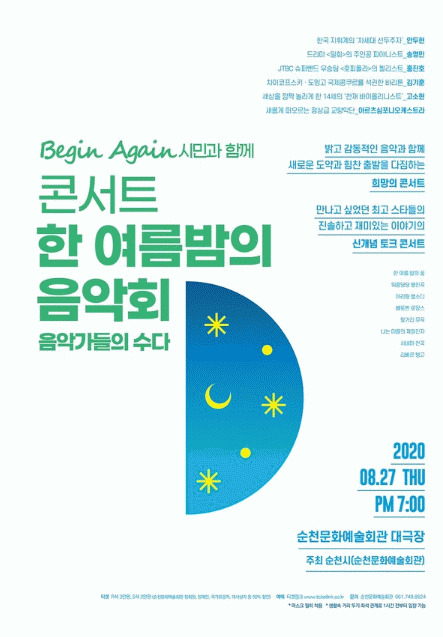 À̹ø ÄܼƮ ¡®ÇÑ¿©¸§¹ãÀÇ À½¾Çȸ¡¯´Â Äڷγª 19·Î ÁöÃÄÀÖ´Â ½Ã¹Îµé¿¡°Ô À§·Î¿Í ´Ù½Ã ½ÃÀÛÀ̶ó´Â Èñ¸ÁÀ» ÁÖ°íÀÚ ±âȹÇÑ °ø¿¬À¸·Î ÇöÀç Ŭ·¡½Ä À½¾Ç°èÀÇ °¡Àå ÇÖ(HOT)ÇÑ À½¾Ç°¡µéÀ» ÃÊÃ»ÇØ ½Ã¹Î°ú ÇÔ²² »ýµ¿°¨ ³ÑÄ¡´Â °ø¿¬ÀÌ µÉ ¼ö ÀÖµµ·Ï ±âȹÇÏ¿´´Ù.
