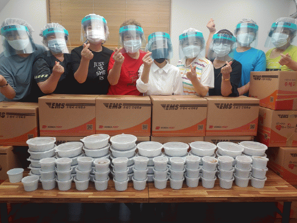 [ÇÁ·¹½ºÁ¸]±¤»ê±¸ ¼ÛÁ¤1µ¿ Áö¿ª»çȸº¸ÀåÇùÀÇü(À§¿øÀå ±â¿µÃ¶)°¡ 6ÀÏ Äڷγª19·Î Áß´ÜÇß´ø ¡®»ç¶ûÀÇ ¹ÝÂù³ª´® »ç¾÷¡¯À» Àç°³Çϰí, ¸¶À» ÅԹ翡¼ Àç¹èÇÑ ½ÄÀç·á·Î ¸¸µç ¹ÝÂùÀ» 35¼¼´ë¿¡ Àü´ÞÇß´Ù.
