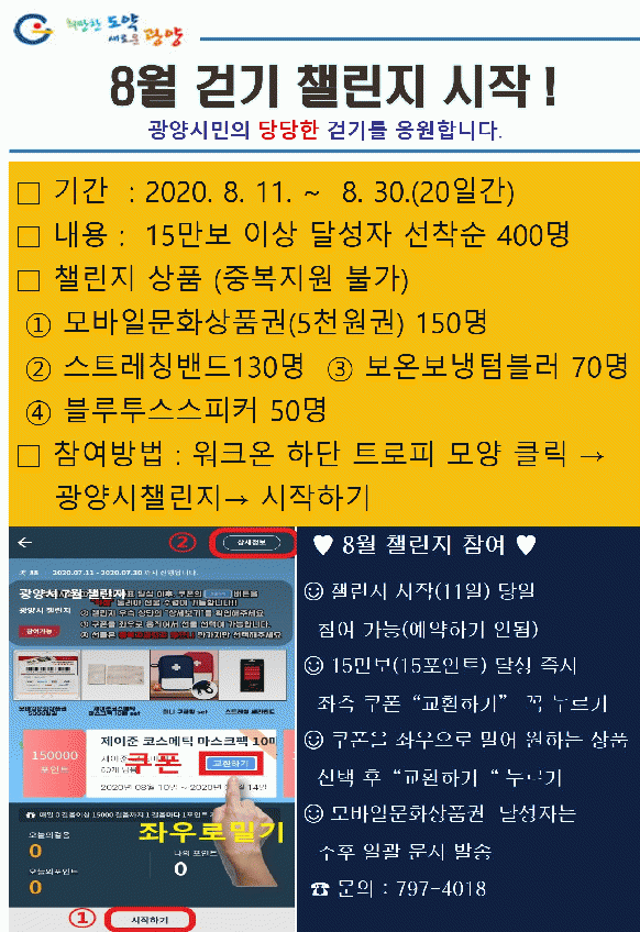 Âü¿© ¹æ¹ýÀº ¸ð¹ÙÀÏ ¾Û ¿öÅ©¿Â ¼³Ä¡ ÈÄ ±¤¾ç½Ã °ø½ÄÄ¿¹Â´ÏƼ(À¾¸éµ¿ ¼±ÅÃ)¿¡ °¡ÀÔÇÏ°í ±¤¾ç½Ã 縰Áö¿¡¼ ¡®½ÃÀÛÇϱ⡯¸¦ ´©¸¥ ÈÄ ÈÞ´ëÆùÀ» ¼ÒÁöÇÏ°í °ÉÀ¸¸é µÇ¸ç, 1ÀÏ ÃÖ´ë 1¸¸5õ º¸·Î Á¦ÇѵȴÙ.