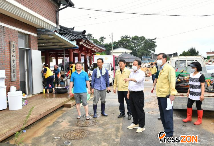 À̳¯ ÃÖ ±º¼ö´Â °ü³» 12°³ À¾¸éÀÇ ¼öÇØ ÇöÀåÀ» »ìÇÇ¸ç º¹±¸ ÀÛ¾÷¿¡ ÇÑâÀÎ ÀÚ¿øºÀ»çÀÚ¿Í À庴, Á÷¿øµéÀ» °Ý·ÁÇß´Ù.