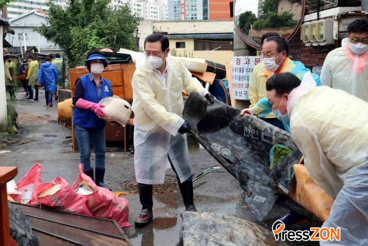 À̿뼷 ½ÃÀåµµ ½Ãû Á÷¿ø ¹× ÀÚ¿øºÀ»çÀÚ µî°ú ÇÔ²² ±¤»ê±¸ ¼ÛÁ¤µ¿ ½Å´ö¸¶À»¿¡¼ ħ¼öµÈ ÁÖÅÃÀÇ °¡Àçµµ±¸¸¦ Á¤¸®ÇÏ°í ¾²·¹±â¿Í Æó±â¹°À» ¼ö°ÅÇÏ´Â µîÀÇ È°µ¿À¸·Î º¹±¸¿¡ ÈûÀ» º¸ÅÉ´Ù.