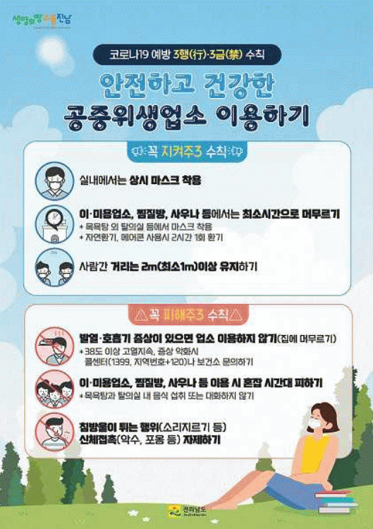¶ÇÇÑ, Áý´Ü °¨¿°ÀÇ À§Çèµµ°¡ ³ôÀº ÀÌ¡¤¹Ì¿ë, ¸ñ¿åÀå¿¡ Äڷγª19 3Çà(ú¼)¡¤3±Ý(Ð×)¼öÄ¢ ¡®¾ÈÀüÇÏ°í °Ç°ÇÑ °øÁßÀ§»ý¾÷¼Ò ÀÌ¿ëÇϱ⡯ Æ÷½ºÅ͸¦ ºÎÂøÇÏ¿© ´Ù¼ö°¡ ÀÌ¿ëÇÏ´Â °øÁßÀ§»ý¾÷¼Ò¿¡ Áý´Ü°¨¿°ÀÌ ¹ß»ýµÇÁö ¾Êµµ·Ï È«º¸ÇÏ¿´´Ù.