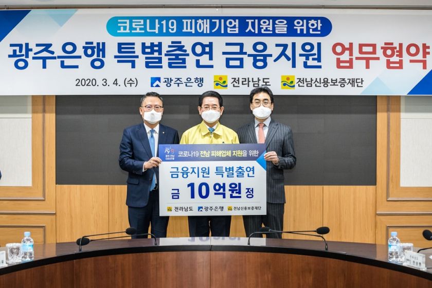 ¼ÛÁ¾¿í ±¤ÁÖÀºÇàÀåÀº 4ÀÏ Àü³²½Å¿ëº¸ÁõÀç´Ü¿¡ Äڷγª19 ÇÇÇØ±â¾÷À» À§ÇØ 10¾ï¿øÀ» Ưº° Ã⿬Çß´Ù.