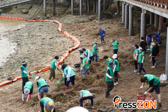 Âü¿©ÀÚµéÀº Æòȱ¤Àå ÀÏ¿ø, °«¹ÙÀ§ ÇØ»óº¸Çà±³ ÀÏ¿ø, ³²³ó·Î ÀαÙ(±¹¸³Çؾ繮ÈÀ翬±¸¼Ò~¹®È¿¹¼úȸ°ü) µî 3°³ ±¸°£À¸·Î ¹èÄ¡µÅ ÇØ¾È°¡¿¡ ½×ÀÎ ¸¶´ëÀÚ·ç(80kg) 500°³ ºÐ·®ÀÇ ÇØ¾ç¾²·¹±â¸¦ ¼ö°ÅÇß´Ù.