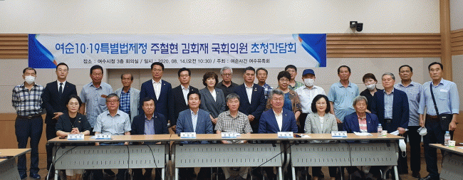 À̳¯ °£´ãȸ¿¡´Â Æø¿°¿¡µµ ºÒ±¸Çϰí Àü¶ó³²µµÀÇȸ ¿©¼ö¡¤¼øÃµ 10¡¤19»ç°Ç Ưº°À§¿øÈ¸ À§¿øÀåÀ» ¸Ã°í ÀÖ´Â °Á¤Èñ ÀÇ¿ø(¿©¼ö6, Àç¼±)À» ºñ·ÔÇØ ¿©¼öÃâ½Å ±èȸÀ硤ÁÖöÇö ±¹È¸ÀÇ¿ø, µµÀÇ¿ø, À¯°¡Á·, ¿©¼ö¡¤¼øÃµ 10¡¤19»ç°Ç °ü·Ã ´Üü °ü°èÀÚ µîÀÌ Âü¼®ÇÏ¿© Ưº°¹ý Á¦Á¤¿¡ ´ëÇÑ ¿¸ÁÀÌ ¾ó¸¶³ª Å«Áö »õ»ï ÁüÀÛÄÉ Çß´Ù.
