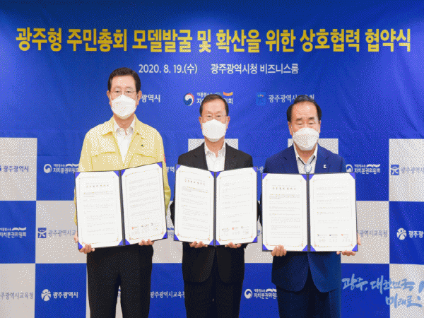 [ÇÁ·¹½ºÁ¸]±¤ÁÖ±¤¿ª½Ã´Â 19ÀÏ ¿ÀÀü ½Ãû¿¡¼ À̿뼷 ½ÃÀå, ÀåÈÖ±¹ ½Ã±³À°°¨, ±è¼øÀº ´ëÅë·É¼Ò¼Ó ÀÚÄ¡ºÐ±ÇÀ§¿øÈ¸ À§¿øÀå 3°³ ±â°ü ´ëÇ¥°¡ Âü¼®ÇÑ °¡¿îµ¥ ±¤ÁÖÇü ÁÖ¹ÎÃÑȸ ¸ðµ¨À» ¹ß±¼ÇØ Àü±¹¿¡ È®»êÇÏ´Â µ¥ »óÈ£ Çù·ÂÇÏ´Â Çù¾àÀ» ü°áÇß´Ù.