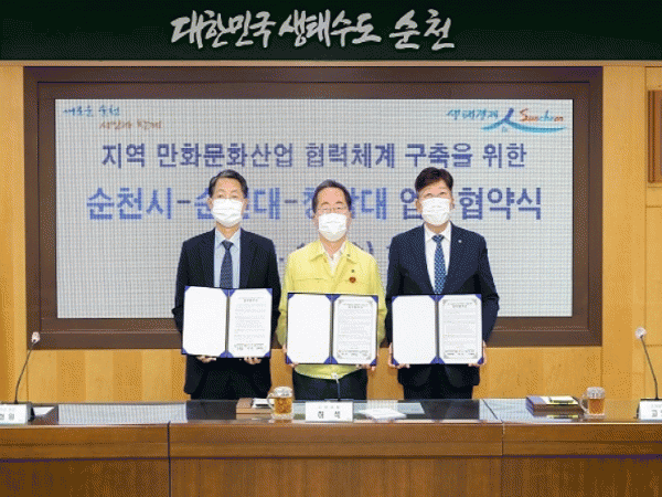 ¼øÃµ½Ã´Â 19ÀÏ ¼øÃµ½Ãû ¼ÒȸÀǽǿ¡¼ Çã¼® ¼øÃµ½ÃÀå°ú °í¿µÁø ¼øÃµ´ëÇб³ ÃÑÀå, ¼Çü¿ø û¾Ï´ëÇб³ ÃÑÀåÀÌ Âü¼®ÇÑ °¡¿îµ¥ ¡®Áö¿ª ¸¸È¹®È»ê¾÷ Çù·Âü°è ±¸ÃàÀ» À§ÇÑ ¾÷¹«Çù¾à¡¯À» ü°áÇß´Ù°í ¹àÇû´Ù.