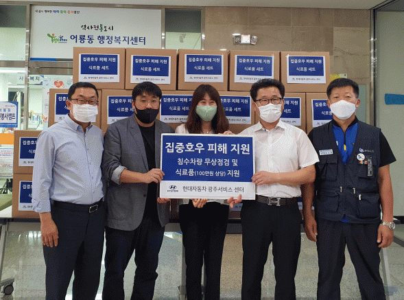 [ÇÁ·¹½ºÁ¸]Çö´ëÀÚµ¿Â÷ ±¤ÁÖ¼ºñ½º¼¾ÅÍ(¼¾ÅÍÀå ¹Ú¼®À±)°¡ ±¤Áֽà ±¤»ê±¸ ¾î·æµ¿ ÇàÁ¤º¹Áö¼¾ÅÍ¿¡ ÁýÁßÈ£¿ì ÇÇÇØ ÀÌÀç¹ÎÀ» À§ÇØ 100¸¸¿ø »ó´çÀÇ ½Ä·áǰ ¼¼Æ®¸¦ Àü´ÞÇϰí, ¼±¿îÁö±¸ Ä£¼ö°ø¿ø ħ¼ö Â÷·® ¿£Áø¡¤º¯¼Ó±â °Ë»ç¿Í ¼Ò¸ðǰ ±³Ã¼ µî ħ¼ö Â÷·® ¹«»ó Á¡°ËÀ» ½Ç½ÃÇß´Ù.