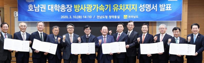 È£³²±Ç ´ëÇÐÃÑÀåµéÀÌ 10ÀÏ Àü³²µµÃ»¿¡¼ ¹æ»ç±¤°¡¼Ó±â À¯Ä¡¸¦ ÁöÁöÇÏ´Â ¼º¸íÀ» ¹ßÇ¥, Àü³²µµ¿¡ ÈûÀ» ½Ç¾ú´Ù. Àü¶ó³²µµÃ» Á¦°ø.