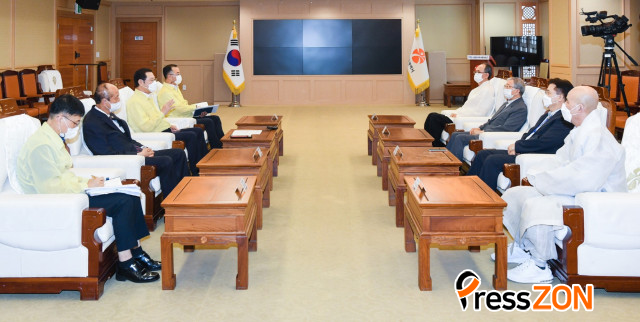 [ÇÁ·¹½ºÁ¸]À̿뼷 ±¤ÁÖ±¤¿ª½ÃÀåÀÌ Äڷγª19 Áö¿ª°¨¿° È®»êÀ» ¸·±â À§ÇØ 5´ë Á¾±³´Üü ´ëÇ¥µé°ú ±ä±Þ °£´ãȸ¸¦ °®°í Àû±ØÀûÀÎ ÇùÁ¶¸¦ ¿äûÇß´Ù.