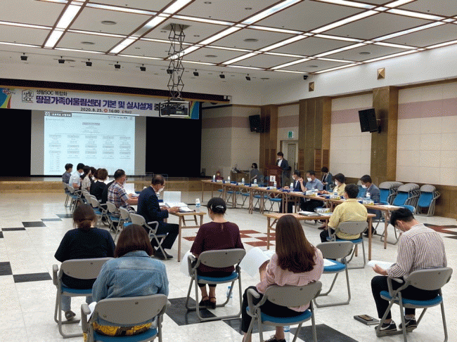 ¶¥³¡°¡Á·¾î¿ï¸²¼¾ÅÍ ½ÅÃàÃßÁøÀ§¿øÈ¸ À§¿øÀ» ºñ·ÔÇØ °Ç°°¡Á¤¡¤´Ù¹®È°¡Á·Áö¿ø¼¾ÅÍ °ü°èÀÚ, ÇØ³²¸¾Ä«Æä ȸ¿ø, ÁֹΠµî 30¿©¸íÀÌ Âü¼®ÇÑ °¡¿îµ¥ ¿¸° º¸°íȸ¿¡¼´Â ÇöÀç±îÁö ¼³°è ÁøÇà»çÇ×À» ¼³¸íÇϰí, ÁֹΠÀǰßÀ» ûÃëÇß´Ù.