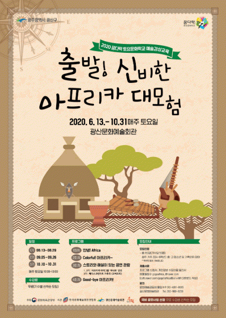 À̹ø ÇÁ·Î±×·¥Àº ¾ÆÇÁ¸®Ä« ÀüÅëÃã°ú ¾Ç±â ¿¬ÁÖ Ã¼Çè, ¹®È ÀÌÇØ, °ø¿¬°ü¶÷ ¿¹Àý±³À° µîÀ¸·Î ²Ù¸çÁ® ÀÖ´Ù. ¼ö¾÷Àº 10/10~31ÀÏ ¸ÅÁÖ Åä¿äÀÏ ¿ÀÀü ±¤»ê¹®¿¹È¸°ü¿¡¼ 3ȸ ÁøÇàµÇ°í, 10/24¿¡´Â ±¤»ê¹®¿¹È¸°ü¿¡¼ ¸ÅÁ÷½ºÅ©¸°¾ÆÆ® °¡Á·±Ø °ü¶÷ÀÌ ÀÖ´Ù.