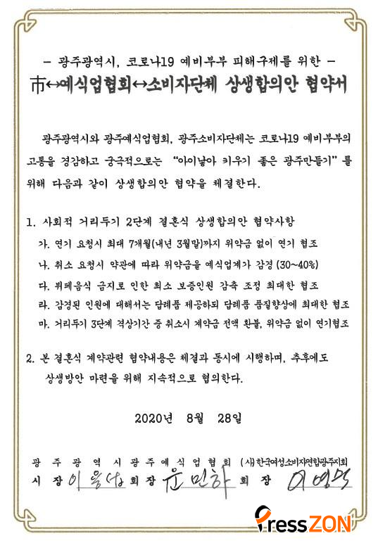 ±¤ÁÖ½Ã¿Í ±¤ÁÖ¿¹½Ä¾÷Çùȸ, ±¤ÁÖ¼ÒºñÀÚ´Üü´Â Äڷγª19 ¿¹ºñºÎºÎÀÇ °íÅëÀ» °æ°¨ÇÏ°í ±Ã±ØÀûÀ¸·Î ¡®¾ÆÀ̳º¾Æ Ű¿ì±â ÁÁÀº ±¤ÁÖ ¸¸µé±â¡¯¸¦ À§ÇØ ¿¹ºñºÎºÎÀÇ ÇÇÇØ±¸Á¦ ¹æ¾È¿¡ ´ë½ÂÀûÀ¸·Î ÇÕÀÇÇß´Ù.