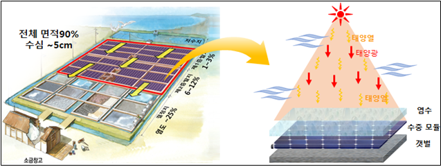 3ÀÏ ÇÑÀü¿¡ µû¸£¸é Àü³² ¹«¾ÈÀÇ ÇÑ ¿°Àü¿¡ ¼³Ä¡µÈ ÀÌ ½Ã½ºÅÛÀº ¼ö½É 5cm ³»¿ÜÀÇ ¿°Àü Áõ¹ßÁö ¹Ù´Ú¿¡ ¼öÁß Å¾籤 ¸ðµâÀ» ¼³Ä¡ÇØ ¡®¼Ò±Ý°ú Àü·ÂÀ» µ¿½Ã¿¡ »ý»ê¡¯ÇÒ ¼ö Àִ ž籤 ¹ßÀü½Ã½ºÅÛÀÌ´Ù.