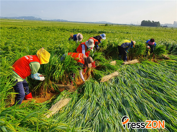 ¿©¼ö½Ã¿¡ µû¸£¸é 4ÀÏ ³ó¾÷±â¼ú¼¾ÅÍ °ø¹«¿ø, ÀÚ¿øºÀ»çÀÚ µî 30¿© ¸íÀÌ ¼Ò¶ó¸é ´ëÆ÷¸® ³²ÇØÃ̸¶À»À» ã¾Æ ¼öÈ®±â¸¦ ¾ÕµÐ ºÀÇ µµº¹ ÇÇÇØ ÃÖ¼Òȸ¦ À§ÇØ 0.6haÀÇ º ¼¼¿ì±â ÀÏ¼Õ µ½±â¸¦ ÃßÁøÇß´Ù.