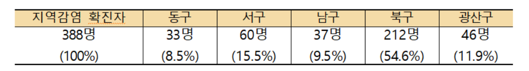 ÇöÀç ´©Àû È®ÁøÀÚ 440¸í Áß ÇØ¿ÜÀ¯ÀÔ(48¸í)°ú Ÿ½Ãµµ(4¸í) È®ÁøÀÚ¸¦ Á¦¿ÜÇϸé Áö¿ª°¨¿°ÀÚ°¡ 388¸íÀ¸·Î ºÏ±¸ ÁÖ¹ÎÀÌ 212¸íÀ¸·Î °¡Àå ¸¹´Ù.