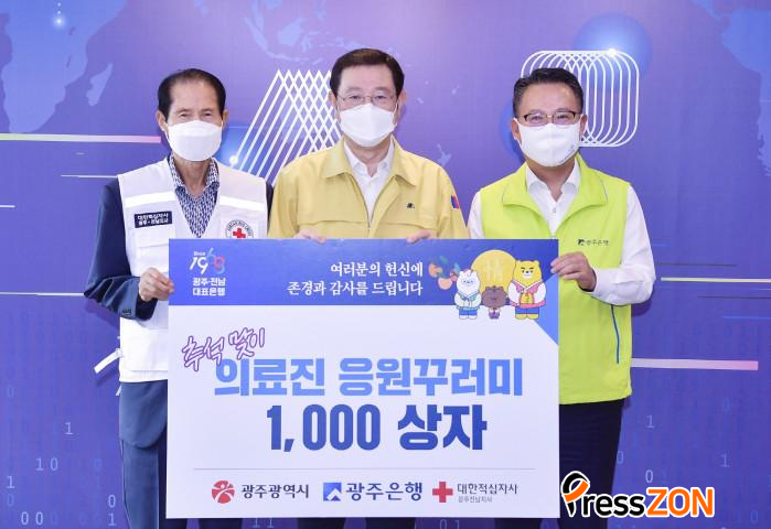 ±¤Áֽùΰú ÇÔ²² ¼ºÀåÇØ ¿Â ±¤ÁÖÀºÇàÀº Ãß¼®À» ¸Â¾Æ Äڷγª19 ´ëÀÀÀÇ ÃÖÀü¼±¿¡¼ »çÅõ¸¦ ¹úÀÌ´Â ÀÇ·áÁøÀ» À§ÇØ ¡®Ãß¼®¸ÂÀÌ ÀÇ·áÁø ÀÀ¿ø²Ù·¯¹Ì¡¯ 1000°³¸¦ ´ëÇÑÀû½ÊÀÚ»ç ±¤ÁÖÀü³²Áö»ç¿¡ Àü´ÞÇß´Ù.