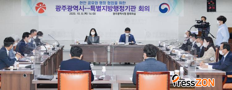 [ÇÁ·¹½ºÁ¸]±¤ÁÖ±¤¿ª½Ã´Â 8ÀÏ ¿ÀÈÄ ½Ãû ÁßȸÀǽǿ¡¼ Áö¿ª ³» ±¹°¡±â°üÀΠƯº°Áö¹æÇàÁ¤±â°ü ±â°üÀåµé°ú ȸÀǸ¦ ¿¾î Çù¾÷°úÁ¦¸¦ Á¡°ËÇÏ°í ±â°ü °£ Çö¾È¿¡ ´ëÇÑ ÀǰßÀ» ±³È¯Çß´Ù.
