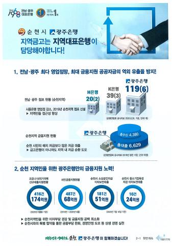 ±¤ÁÖÀºÇàÀº ¼øÃµ½Ã Áö¿ª¹ÎÀ» À§ÇÑ ÀÌÀںδ㠰氨 ¹× ±ÝÀ¶Áö¿ø °ø¹éÀ» ÃÖ¼ÒÈÇϱâ À§ÇØ ¼øÃµ½Ã¿ÍÀÇ Æ¯º° Çù¾àÀ» ÅëÇÑ ±ÝÀ¶Áö¿ø µî ´Ù¾çÇÑ Áö¿øÃ¥À» ³»³õÀ¸¸ç Áö¿ª¹ÎÀÇ ±ÝÀ¶ºÎ´ãÀ» ¿ÏÈÇÔÀ¸·Î½á Áö¿ª ¼Ò»ó°øÀÎÀÇ °æ¿µ¾ÈÁ¤À» µµ¸ðÇϸç Áö¿ª°úÀÇ »ó»ý °æ¿µÀ» ½ÇõÇß´Ù.
