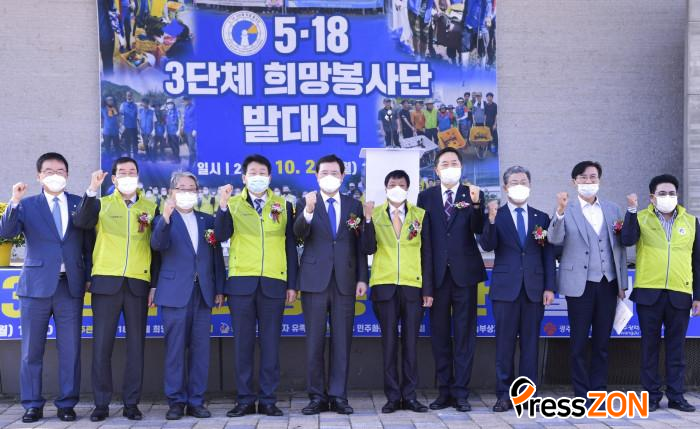 À̿뼷 ±¤ÁÖ±¤¿ª½ÃÀåÀÌ 26ÀÏ ¿ÀÈÄ ½Ãû ¾ß¿ÜÀ½¾Ç´ç¿¡¼ ¿¸° ¿À¿ù ±¤ÁÖÁ¤½Å È®»ê°ú Äڷγª19 À§±â ±Øº¹À» À§ÇÑ '¿À¿ù 3´Üü ºÀ»çȰµ¿' ¹ß´ë½Ä¿¡ Âü¼®ÇØ ±è¿ëÁý ±¤ÁÖ½ÃÀÇȸ ÀÇÀå, ¿À¿ù 3´Üü ȸÀå µî ³»ºóµé°ú ±â³äÃÔ¿µÀ» Çϰí ÀÖ´Ù. [»çÁø ±¤ÁÖ±¤¿ª½Ã]