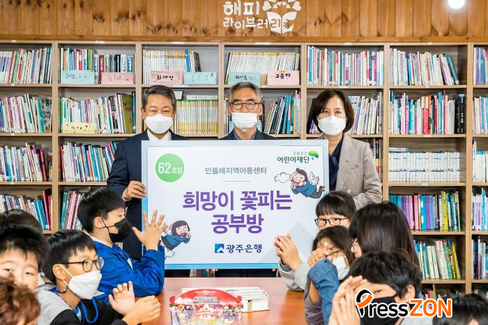 ±¤ÁÖÀºÇà Áö¿ª»ç¶ûºÀ»ç´Ü Á÷¿øµéÀº Ã¥»ó°ú ÀÇÀÚ°¡ ³ëÈĵǾî ÇнÀ¿¡ ¾î·Á¿òÀ» °Þ°í ÀÖ´Â ¹Îµé·¹Áö¿ª¾Æµ¿¼¾ÅÍ¿¡ Ã¥»ó°ú ÀÇÀÚ¸¦ ±³Ã¼Çϰí, ¿Ã ¿©¸§ ¹«´õÀ§¿¡ °í»ýÇß´ø ¾ÆÀ̵éÀÇ »ç¿¬À» µè°í ÄèÀûÇÑ ÇнÀȯ°æÀ» À§ÇØ ÇнÀ½Ç¿¡ ¿¡¾îÄÁ°ú ¼±Ç³±â¸¦ ¼±¹°Çß´Ù.
