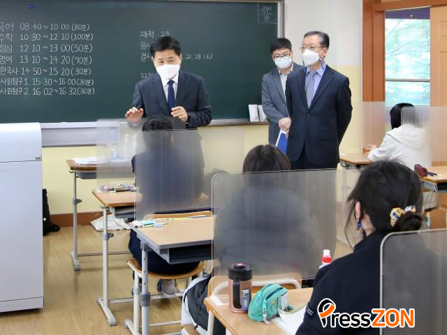[ÇÁ·¹½ºÁ¸]Àå¼®¿õ Àü¶ó³²µµ±³À°°¨ÀÌ 27ÀÏ(È) 2021 ´ëÀÔ¼ö´É ½ÃÇèÀåÀÎ ¹«¾È ³²¾Ç°íµîÇб³¸¦ ¹æ¹®ÇØ Äڷγª19 ¹æ¿ª Áöħ¿¡ ÀÇÇØ ´Þ¶óÁø ½ÃÇèȯ°æÀ» Á¡°ËÇÏ°í °í3 ¼öÇè»ýµéÀ» °Ý·ÁÇß´Ù.