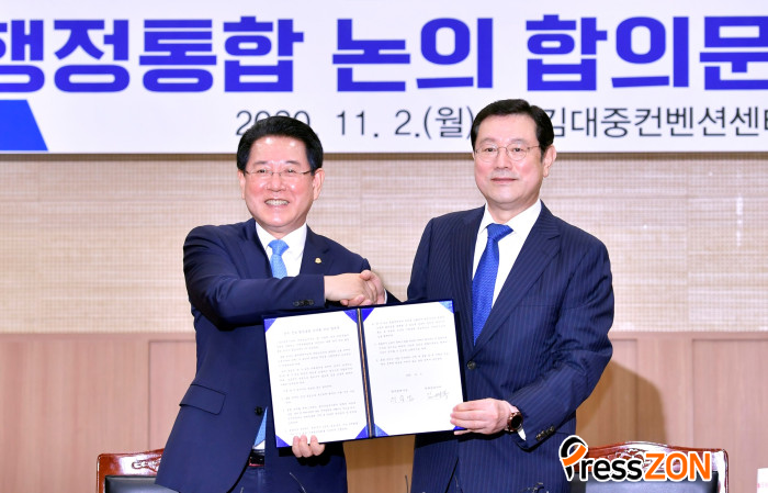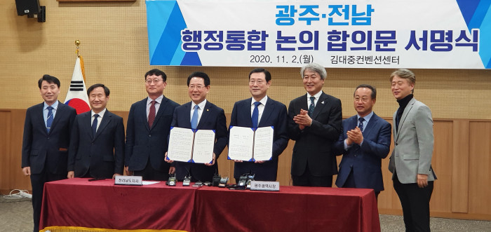 [ÇÁ·¹½ºÁ¸]±¤ÁÖ½Ã¿Í Àü³²µµ°¡ 2ÀÏ ÇàÁ¤ ÅëÇÕ ³íÀǸ¦ °ø½ÄÈÇϱâ·Î ÇÕÀÇÇÏ°í ¼±¾ð¹®À» ¹ßÇ¥Çß´Ù.