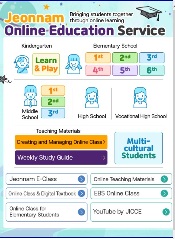 Àü¶ó³²µµ±³À°Ã»Àº 31ÀÏ Äڷγª19 °ü·Ã ÈÞ¾÷ ±â°£ Á¦°øµÇ´Â ¿Â¶óÀÎ ±³À° ¼ºñ½º°¡ ¸ðµÎ Çѱ۷ΠÀÌ·ïÁ® ´Ù¹®È°¡Á¤ ÇлýµéÀÌ ÀÌ¿ëÇÏ´Â µ¥ Å« ºÒÆíÀÌ µû¸¥´Ù°í º¸°í À̵éÀ» À§ÇÑ ¿Â¶óÀÎ ±³À° ¼ºñ½º Áö¿øÃ¥À» ¸¶·ÃÇß´Ù.