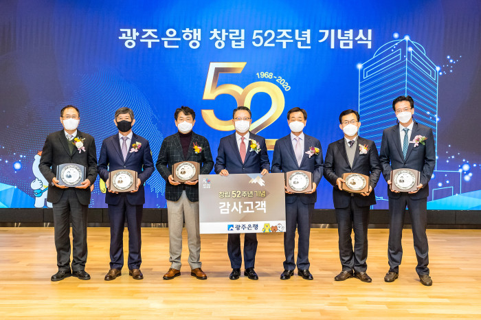 ⸳±â³ä½Ä¿¡¼´Â Áö¿ª°æÁ¦ ¹ßÀüÀ» À§ÇØ Çå½ÅÇϰí, ±¤ÁÖÀºÇàÀÇ 52³âÀ» À§ÇØ ¾Æ³¦¾ø´Â ¼º¿øÀ» º¸³»ÁØ °¨»ç°í°´¿¡°Ô °¨»çÆÐ¸¦ ÁõÁ¤Çß´Ù.