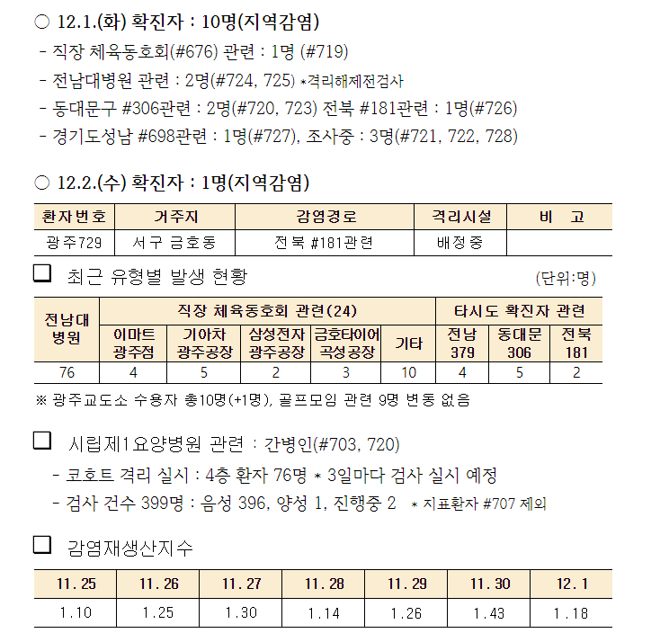 ±¤Áֽô Áö³ 1ÀÏ È®ÁøÀÚ 10¸íÀÌ ¹ß»ýÇØ, 11¿ù24ÀϺÎÅÍ 8ÀÏ µ¿¾È 28ÀÏ ÇϷ縦 Á¦¿ÜÇϰí´Â ¸ÅÀÏ È®ÁøÀÚ°¡ µÎ ÀÚ¸® ¼ö¸¦ ±â·ÏÇϰí ÀÖ´Â À§±â»óȲÀ¸·Î Ä¡´Þ¾Ò´Ù.