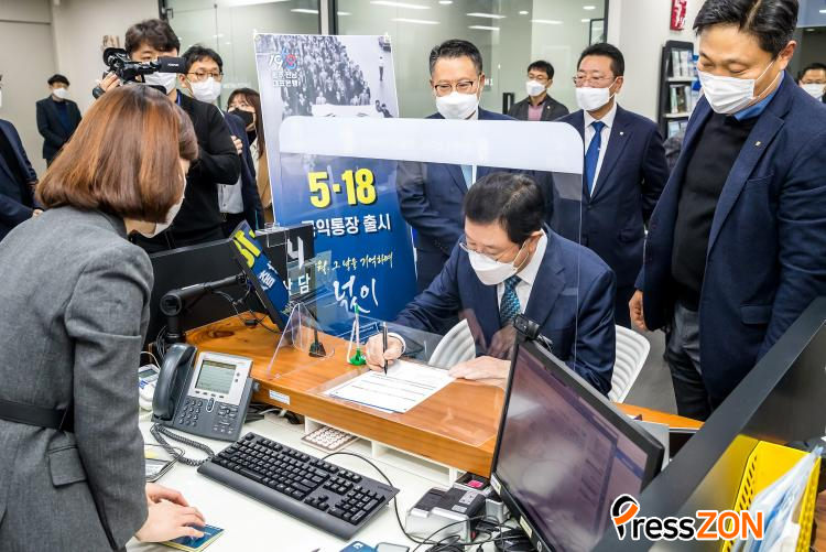 [ÇÁ·¹½ºÁ¸]±¤ÁÖÀºÇà(ÀºÇàÀå ¼ÛÁ¾¿í)Àº 4ÀÏ, ±¤ÁÖ½ÃûÁöÁ¡¿¡¼ À̿뼷 ±¤ÁÖ±¤¿ª½ÃÀå°ú ¼ÛÁ¾¿í ±¤ÁÖÀºÇàÀå, °ü°èÀÚ µîÀÌ Âü¼®ÇÑ °¡¿îµ¥ ¡®¡¸³ÌÀÌ¡¹5¿ù, ±× ³¯À» ±â¾ïÇϸç(ÀÌÇÏ ¡®³ÌÀÌÅëÀ塯)¡¯ °¡ÀÔÇà»ç¸¦ °¡Á³´Ù°í ¹àÇû´Ù.