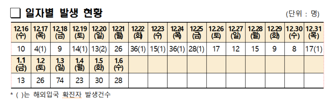 ³¯Â¥º° ¹ß»ý ÃßÀ̸¦ º¸¸é Áö³ 1ÀÏ 13¸í, 2ÀÏ 26¸í, 3ÀÏ 74¸í, 4ÀÏ 23¸í, 5ÀÏ 30¸í, 6ÀÏ 28¸í µî »õÇØ 6ÀÏ µ¿¾È 194¸íÀÌ È®Áø ÆÇÁ¤À» ¹Þ¾Ò´Ù.
