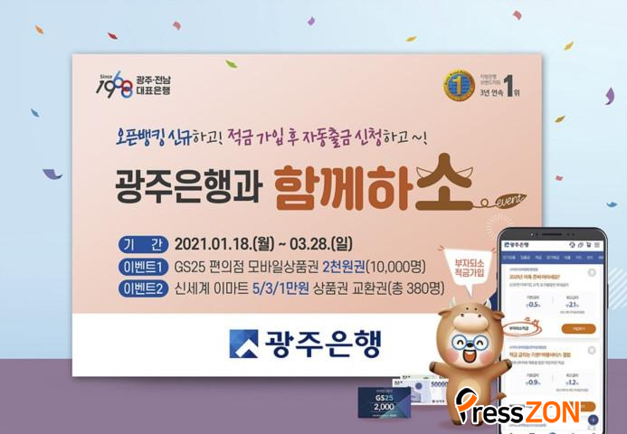 [ÇÁ·¹½ºÁ¸]±¤ÁÖÀºÇà(ÀºÇàÀå ¼ÛÁ¾¿í)Àº ¿À´Â 3¿ù 28ÀϱîÁö ¡®±¤ÁÖÀºÇà°ú ÇÔ²²Çϼҡ¯ ¿ÀǹðÅ· À̺¥Æ®¸¦ ½Ç½ÃÇÑ´Ù°í ¹àÇû´Ù.