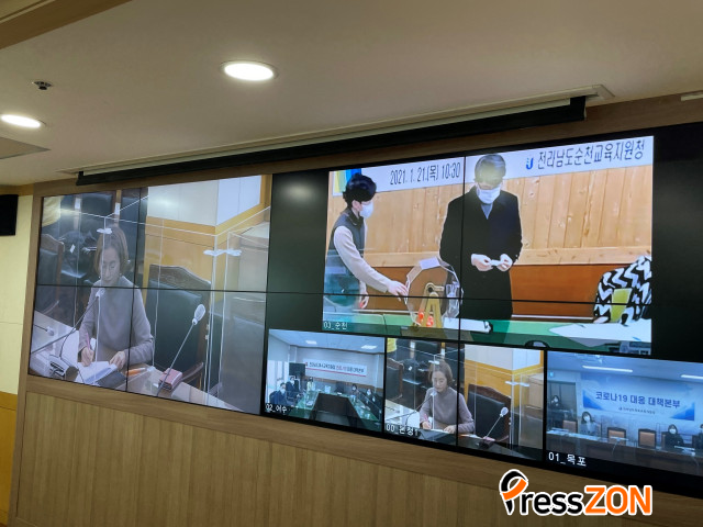 µµ±³À°Ã» °ü°èÀÚ¿Í ¸ñÆ÷¡¤¿©¼ö¡¤¼øÃµ °íµîÇб³ÀÔÇÐÃß÷°ü¸®À§¿øÈ¸ µîÀÌ Âü¼®ÇÑ °¡¿îµ¥ µµ±³À°Ã»°ú ¸ñÆ÷¡¤¿©¼ö¡¤¼øÃµ±³À°Áö¿øÃ»À» ¿¬°áÇØ ¿Â¶óÀÎ ¿µ»óȸÀÇ·Î ÁøÇàµÆ´Ù.