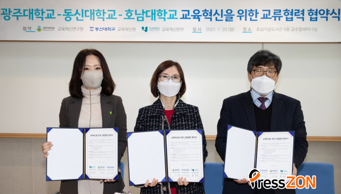 À̳¯ ¿ÀÈÄ ±¤ÁÖ´ë ÇнÀ¹ý ¼¼¹Ì³ª½Ç¿¡¼ ¿¸° Çù¾à½Ä¿¡´Â µ¿½Å´ë À̼ºÁÖ ±³À°Çõ½Å¿øÀå, ±¤ÁÖ´ë ¹ÚÁø¿µ ±³À°Çõ½Å¿¬±¸¿øÀå, È£³²´ë ¼Ûâ¼ö ´ëÇÐÇõ½Åº»ºÎÀåÀÌ Âü¼®Çß´Ù.