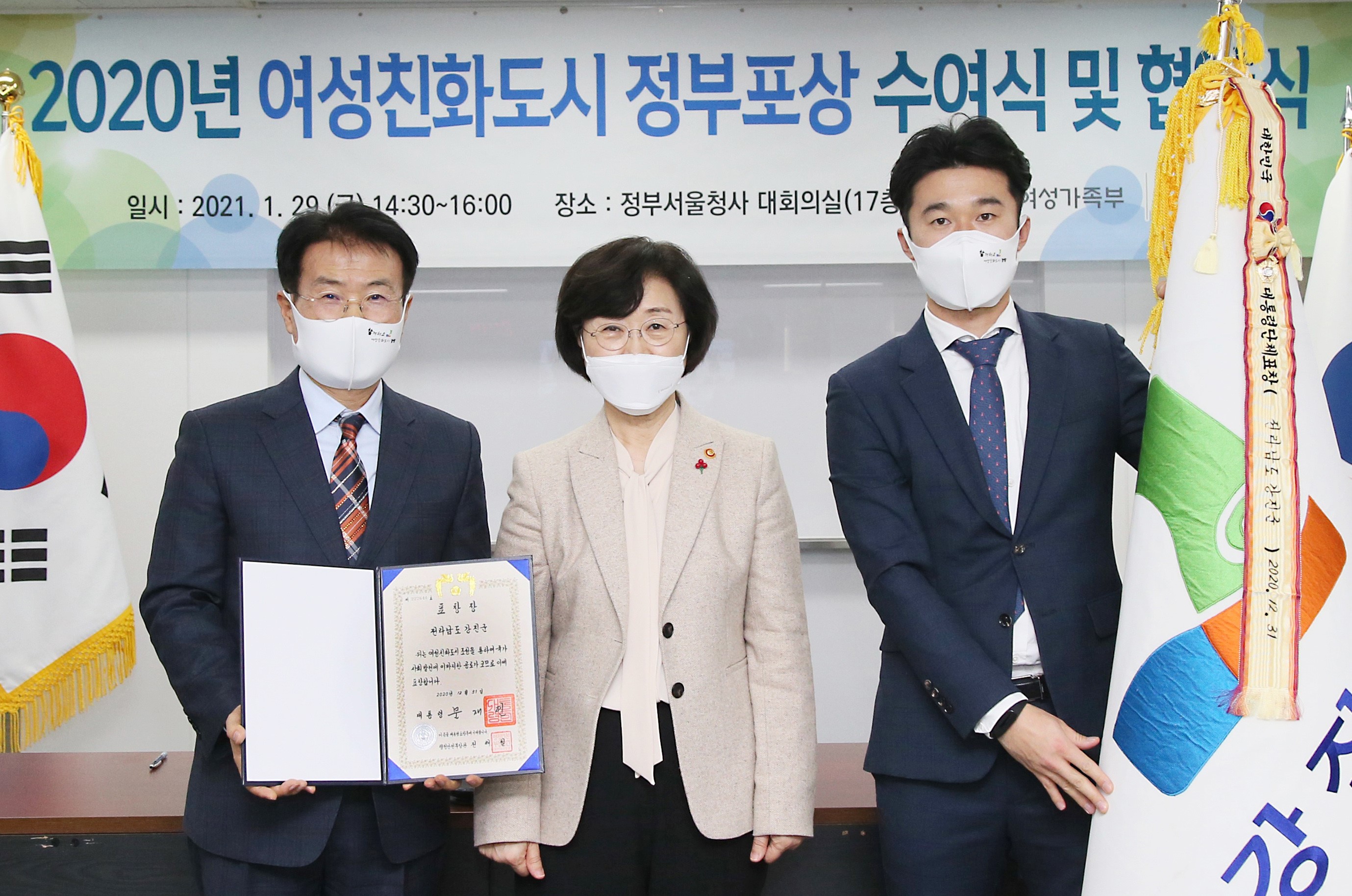 Áö³ 1¿ù 29ÀÏ Á¤ºÎ¼¿ïû»ç ´ëȸÀǽǿ¡¼ ¿¸° Çà»ç¿¡¼´Â Á¤ºÎÆ÷»ó ¹× ¿©¼ºÄ£Èµµ½Ã·Î ÁöÁ¤µÈ Àü±¹ 23°³ ÁöÀÚü°¡ Âü¼®ÇÑ °¡¿îµ¥ Á¤¿µ¾Ö ¿©¼º°¡Á·ºÎÀå°ü°ú À̽¿Á °Áø±º¼ö°¡ ¿©¼ºÄ£Èµµ½Ã Á¶¼º Çù¾à½Ä°ú ÇÔ²² ÇöÆÇÀ» Àü´Þ¹Þ¾Ò´Ù.