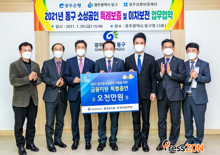 ±¤ÁÖÀºÇàÀº Áö³ 1¿ù 29ÀÏ µ¿±¸Ã»¿¡¼ À̹ø Çù¾àÀ» ÅëÇØ ±¤ÁÖ µ¿±¸ Áö¿ª ¼Ò»ó°øÀεéÀÇ Äڷγª19 À§±â ±Øº¹À» Áö¿øÇϰíÀÚ 5õ¸¸¿øÀ» º°µµ Ã⿬ÇÏ´Â ÇÑÆí, ÃÑ 12¾ï¿øÀÇ ¡®µ¿±¸ ¼Ò»ó°øÀΠƯ·Êº¸Áõ´ëÃ⡯À» Áö¿øÇϱâ·Î Çß´Ù.